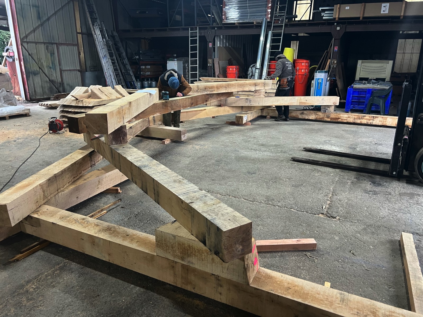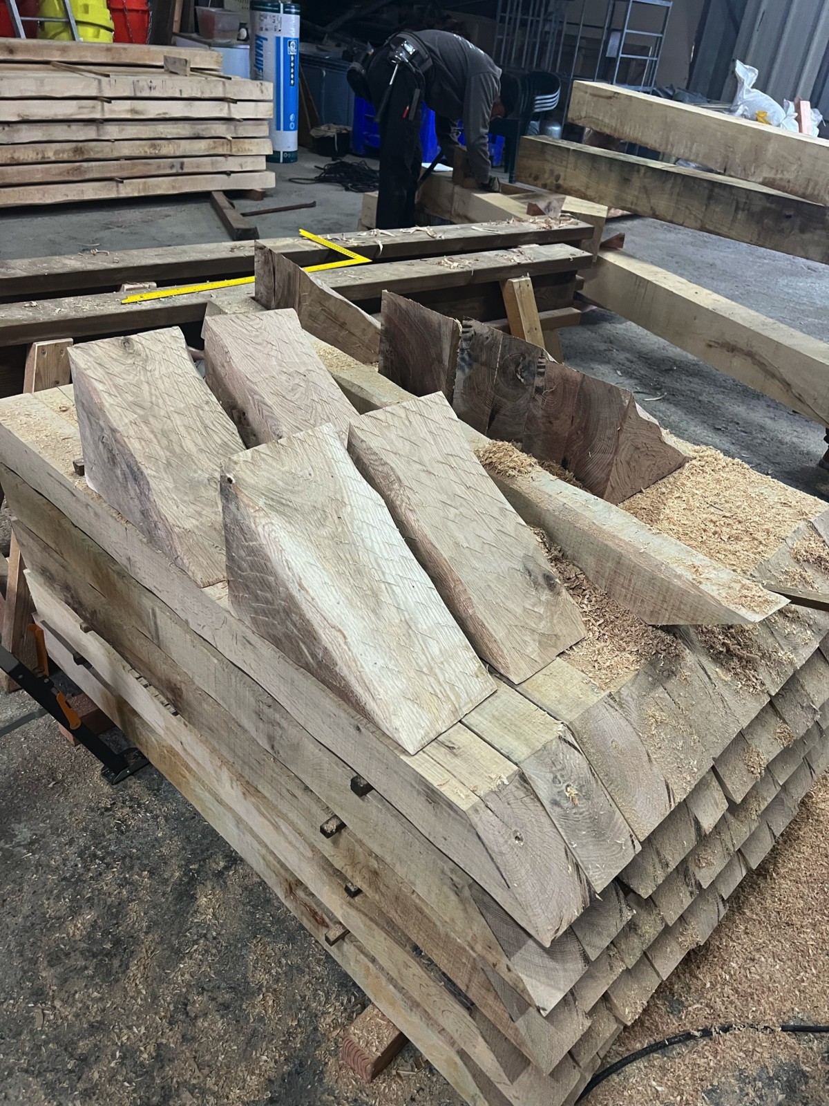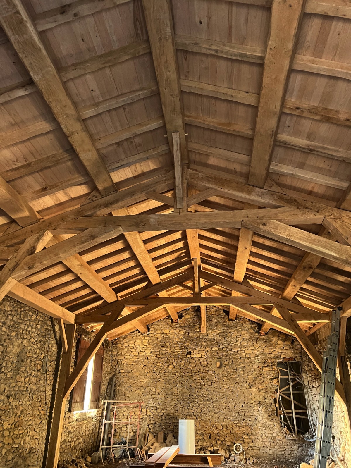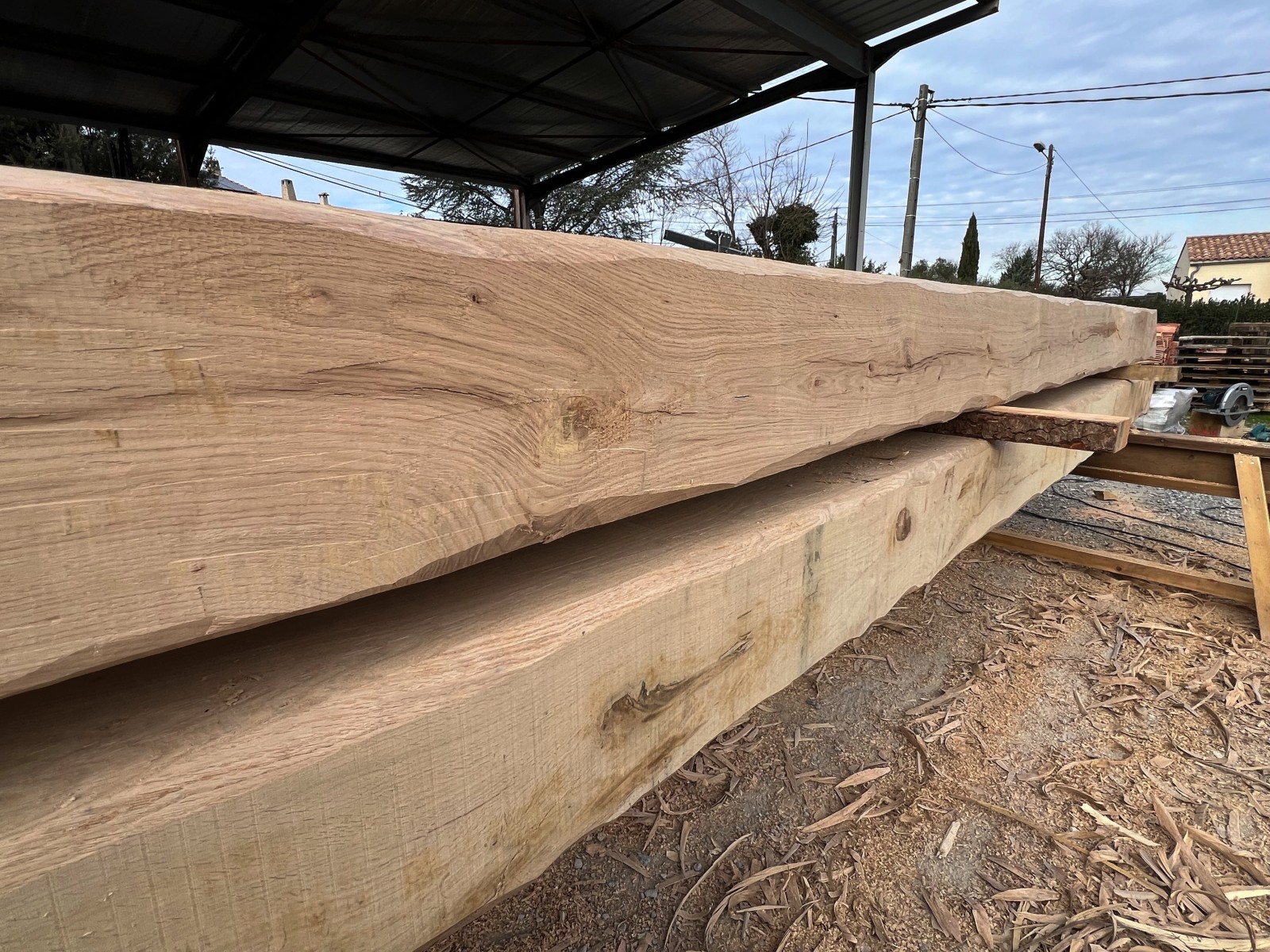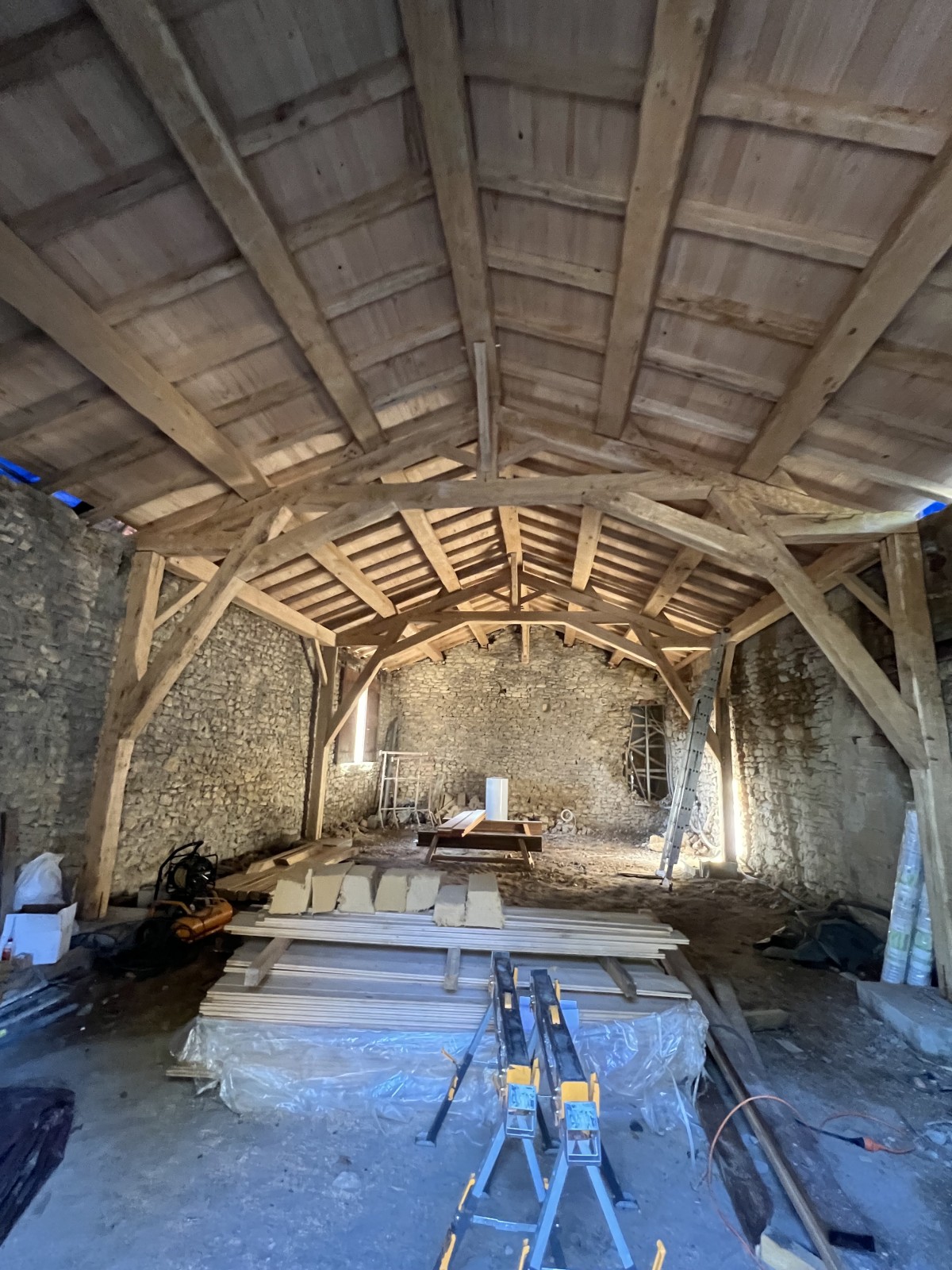 - Fabrication de la charpente : Les éléments de la charpente sont fabriqués dans notre atelier, en utilisant des techniques traditionnelles et des outils modernes.