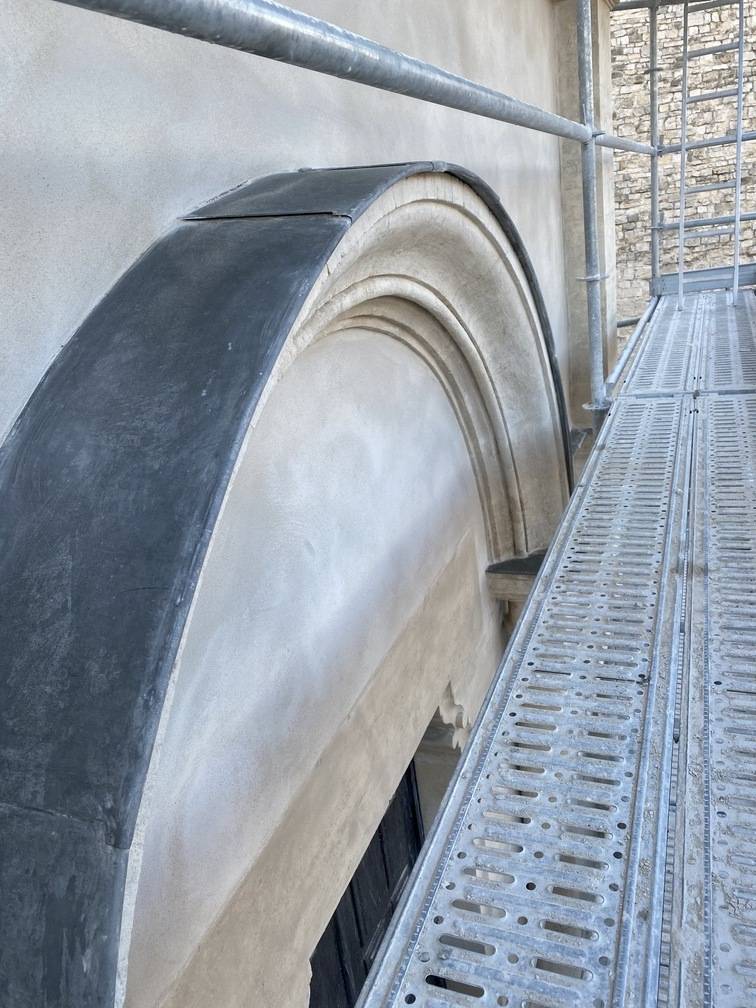 L'entreprise Masclaux toiture à réalisé l'habillage d'un pinacle en pierre et du porche d'entrée avec du Zinc sur une église à côté d'Uzès dans le Gard. La pierre de taille est désormais protégée des intempéries pour plusieurs décennies. Bravo à nos Zingueurs pour cette réalisation certes petite par la taille mais complexe par la forme.